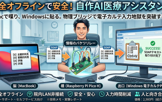 「病院のネットに繋がない、究極の個人用AI書記官」構築ガイド ~ 物理絶縁ブリッジで電子カルテの入力地獄を突破する ~ 投稿日: 2026年4月11日2026年4月11日 投稿者: fukuemon 続きを読む