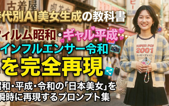 時代別AI美女生成マスターブック フィルム昭和/ギャル平成/インフルエンサー令和を完全再現 昭和・平成・令和の“日本人美女らしさ”を一発再現するプロンプト集 投稿日: 2026年4月11日2026年4月12日 投稿者: fukuemon 続きを読む
