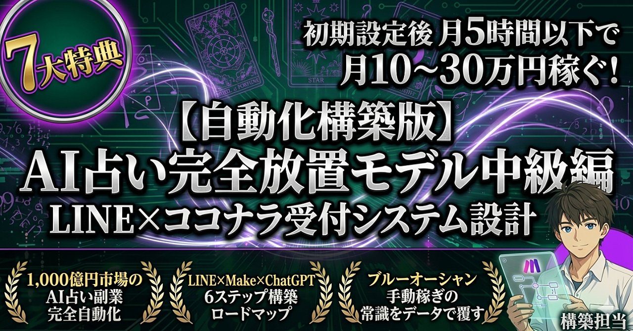 【自動化構築版】AI占い完全放置モデル中級編|LINE×ココナラ受付システム設計