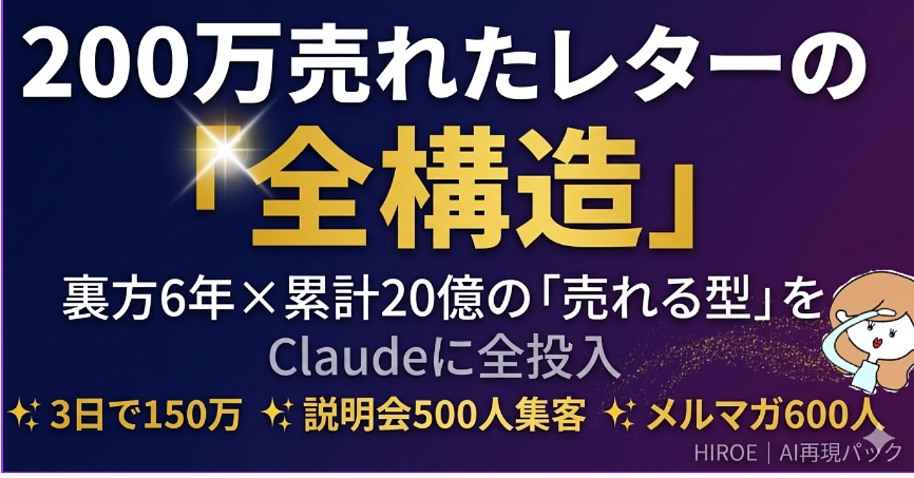 手書きでNotionに打ち込んだだけなのに 200万売れたセールスレターの全構造を AIで一撃再現しちゃうキット。