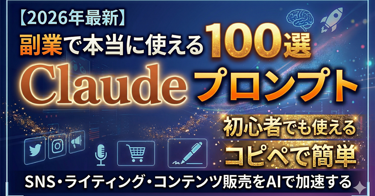 【2026年最新】副業で"本当に使える"Claudeプロンプト100選|SNS・ライティング・コンテンツ販売をAIで加速する