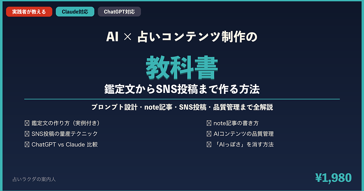 【実践者が教える】AI×占いコンテンツ制作の教科書——Claude・ChatGPTで鑑定文からSNS投稿まで作る方法