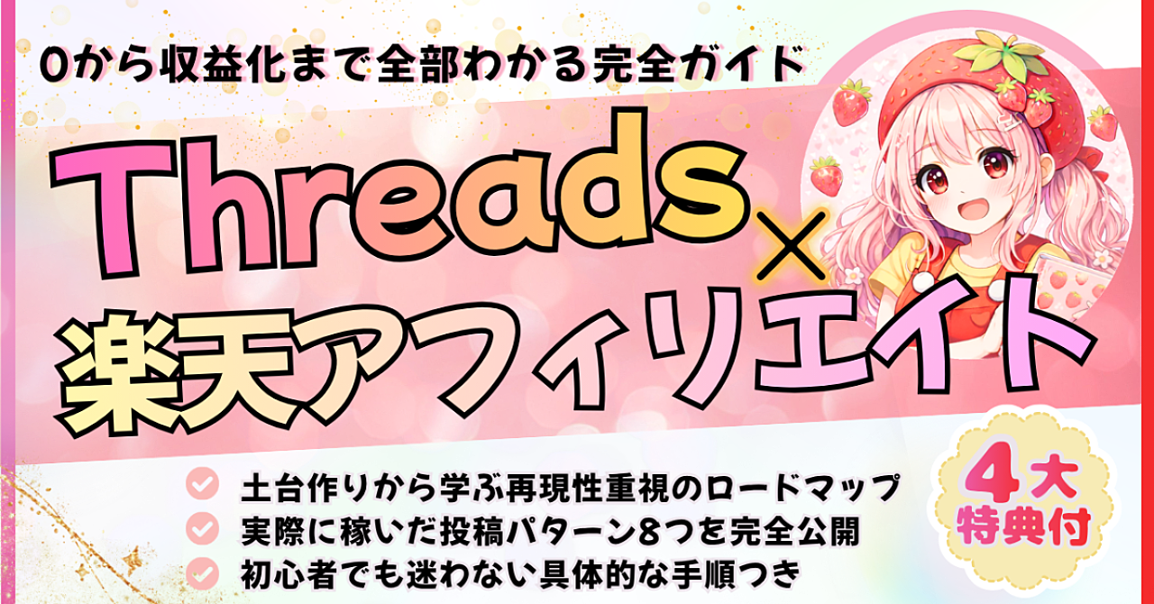 【月12万達成】楽天アフィ歴3年のノウハウを全公開🍓ワーママのThreads×楽天アフィリエイト完全ガイド