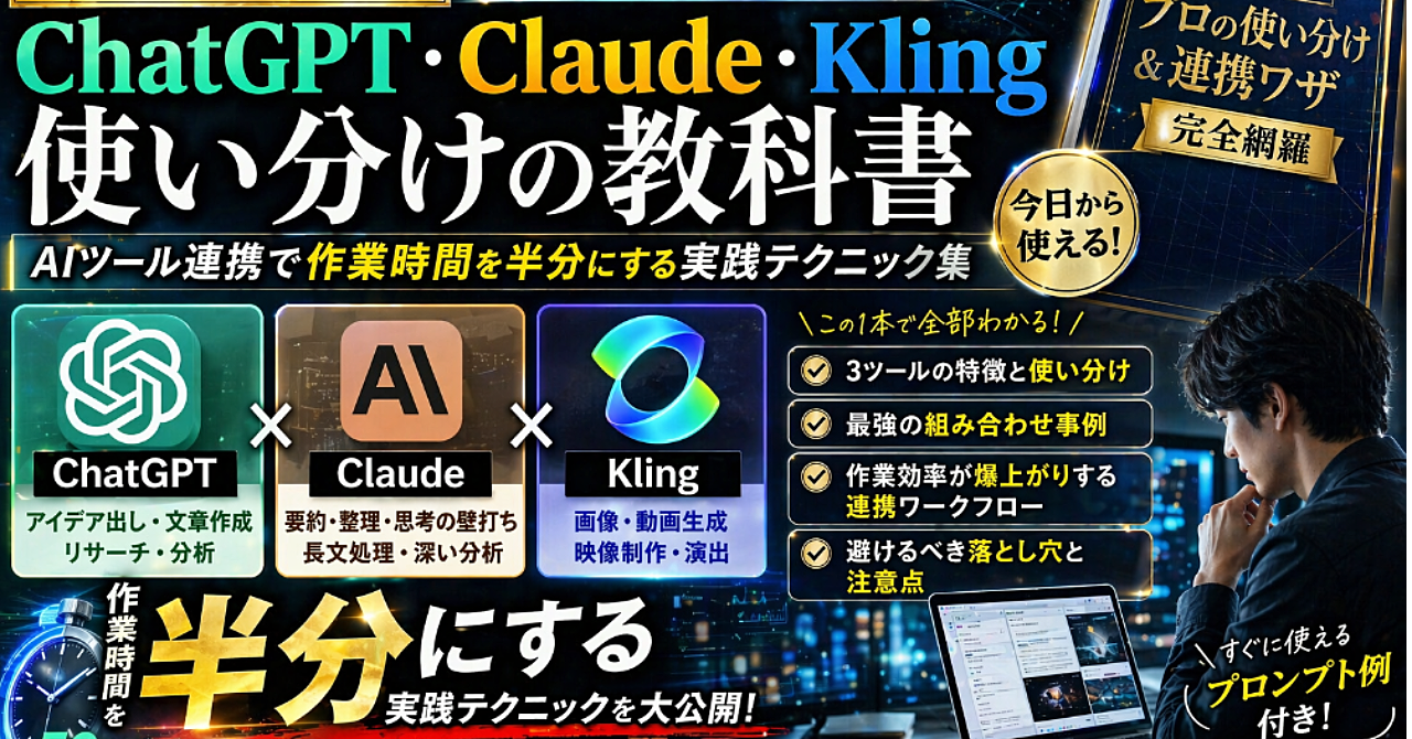 【2026年4月版】ChatGPT・Claude・Kling「使い分けの教科書」|現役ユーザーが教える、AIツール連携で作業時間を半分にする実践テクニック集