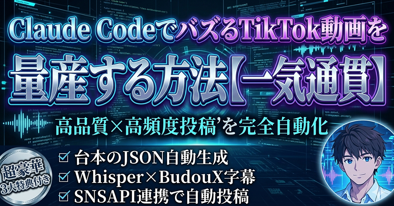 Claude CodeでバズるTikTok動画を量産する方法【企画→編集→投稿まで一気通貫】