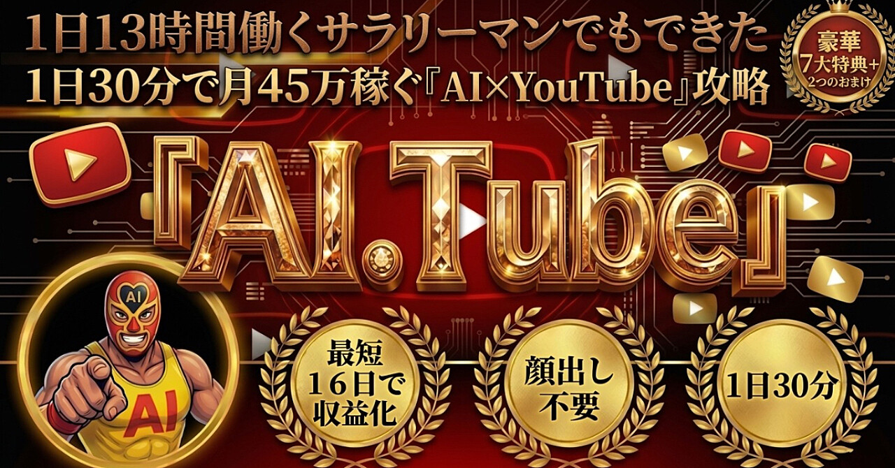 1日13時間働くサラリーマンでもできた、1日30分で月45万稼ぐ【AI×YouTube】攻略『AI.Tube』