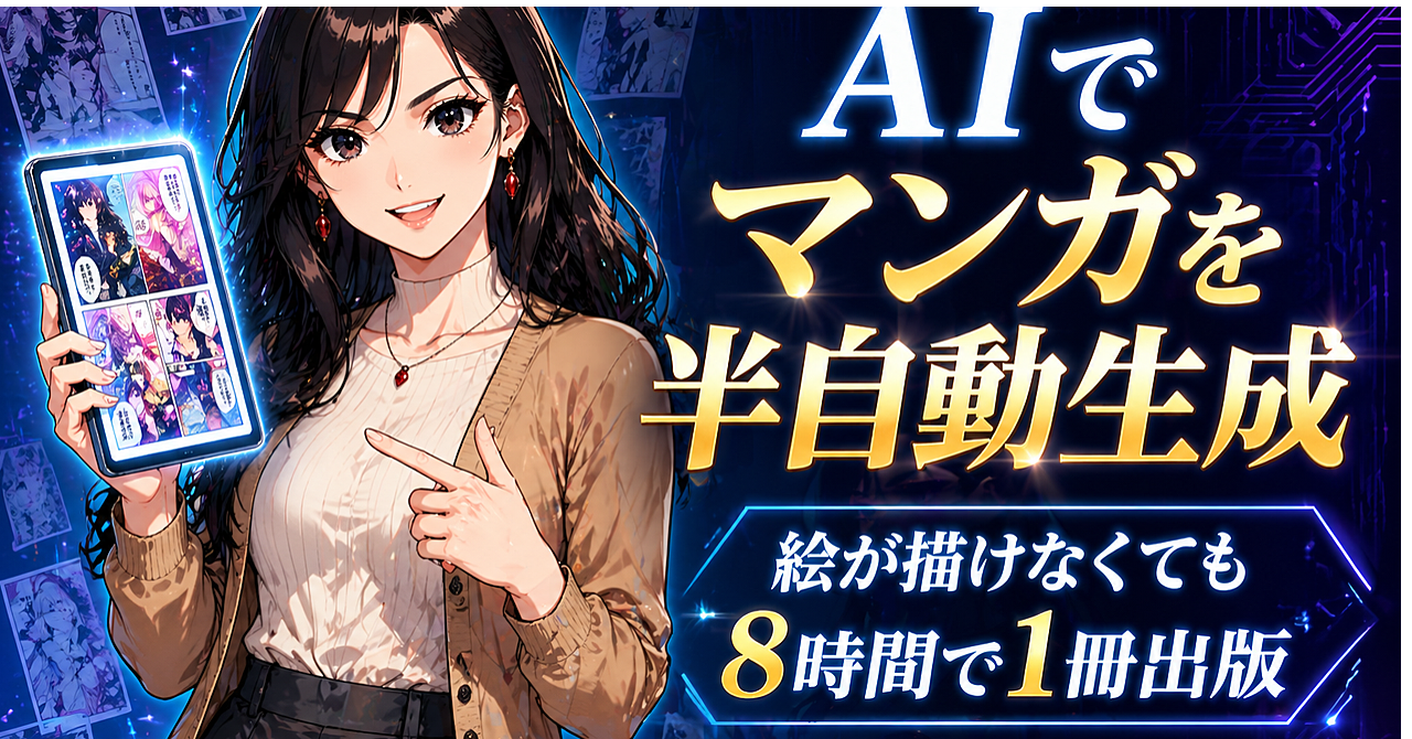 AIでマンガを半自動生成するツール|絵が描けなくても8時間で1冊出版 ようへい 2026-04-25 0 件のレビューがあります 平均スコア 0.0 「絵が描けない自分でも、マンガを出版できた」 その仕組みを、全部公開します。マンガを出版したいと思ったことはありますか?実体験・失敗談・ビジネスの話——文章で書くより、マンガの方が読まれやすいのはわかっている。でも、絵が描けない。私も同じでした。それが2026年4月、C この続きを見るには購入する必要があります この記事を購入する ¥4,900 この記事のレビュー 0 件のレビューがあります 平均スコア 0.0 この記事を購入する ¥4,900