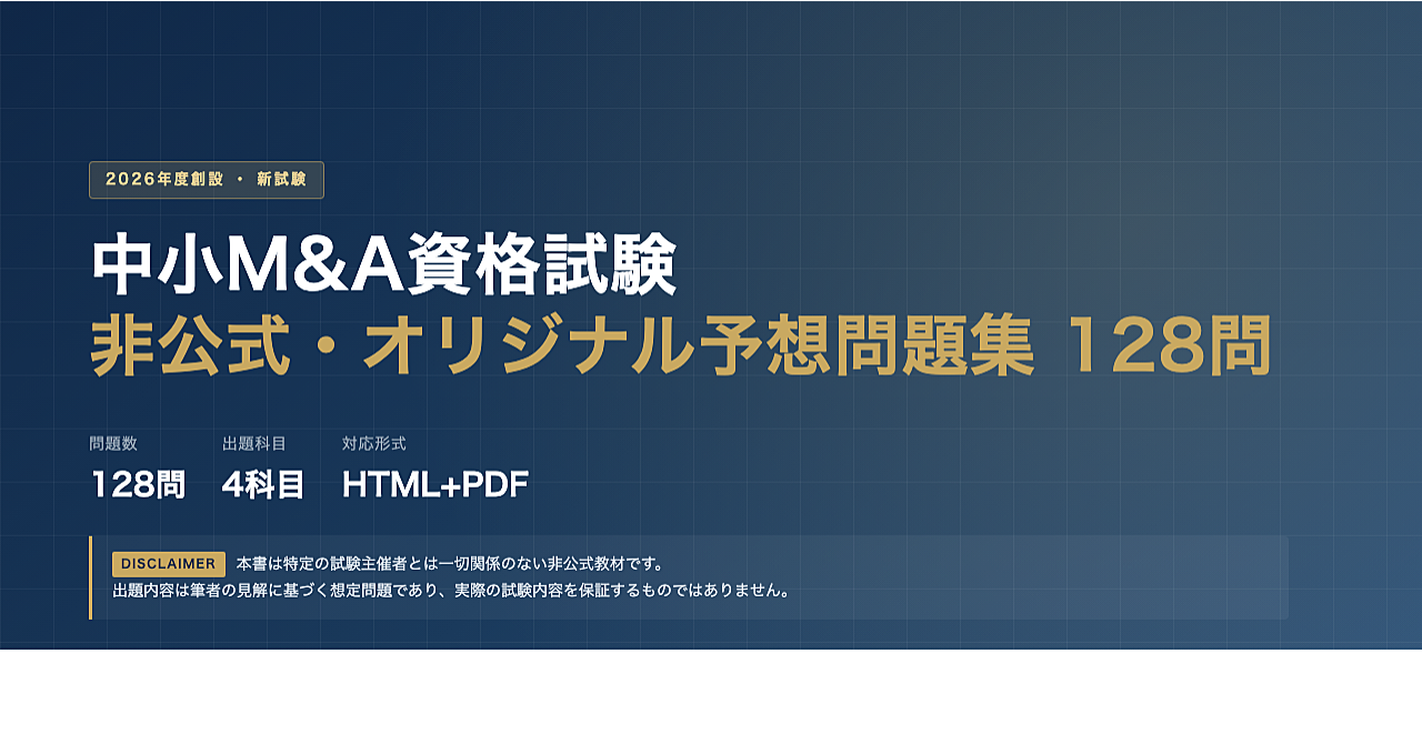 【非公式・予想問題集】新設・M&A資格試験 オリジナル予想問題集 64問128問(PC用HTML+PDF 計4ファイル)