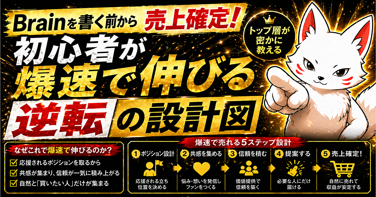 【Brainを書く前から『売上確定!』】トップ層が密かに教える『初心者が爆速で伸びる』逆転の設計図