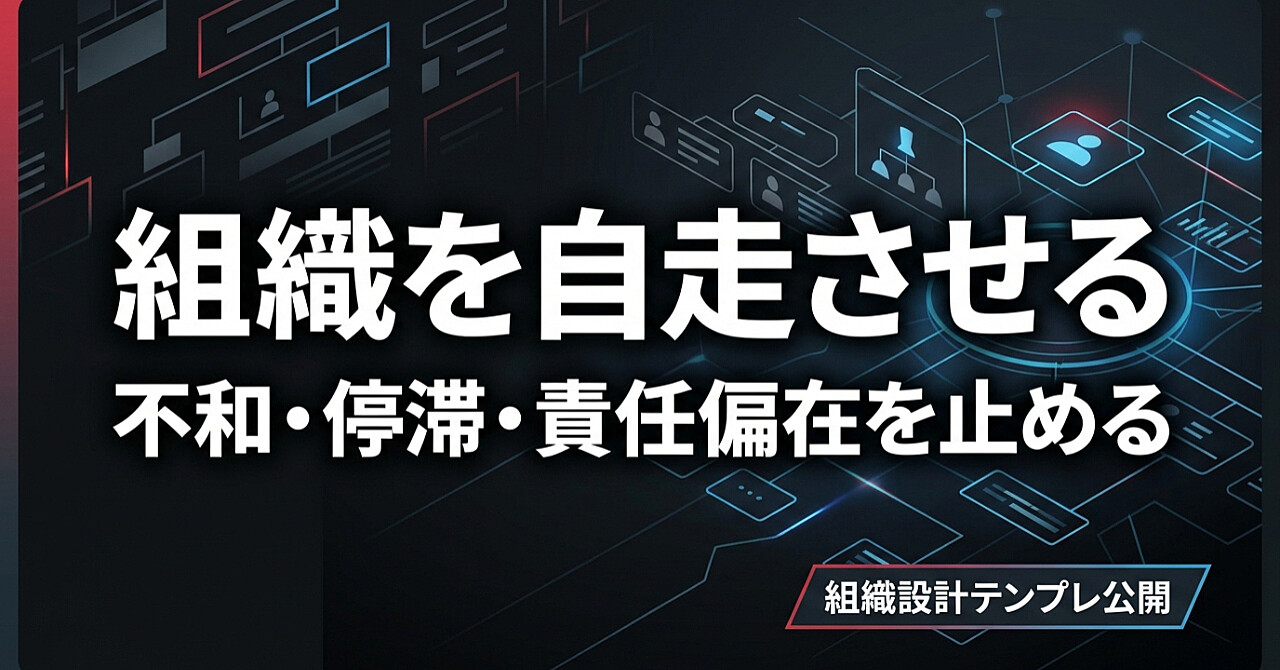 【組織設計テンプレ公開】不和・停滞・責任偏在を止め、組織を自走させる再設計プロトコル stercrane 2026-04-28 0 件のレビューがあります 平均スコア 0.0 会議を増やしても改善しない。話し合っても同じ問題が繰り返される。一部の人だけに負荷が集中し、有能な人ほど先に疲弊していく。こうした組織課題は、個人の性格や熱量の問題ではなく、ルール・役割・評価・情報の流れが噛み合っていない「構造のバグ」で起きていることが多いです。この記事では、組 この続きを見るには購入する必要があります この記事を購入する ¥2,980 この記事のレビュー 0 件のレビューがあります 平均スコア 0.0 この記事を購入する ¥2,980