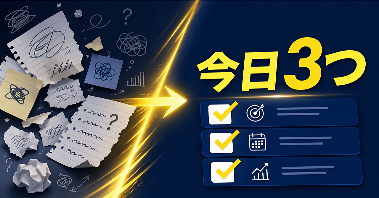曖昧な仕事を「今日やる3つ」に変えるChatGPT実務テンプレート集|ToDo分解・立て直し・GPTs設定文つき