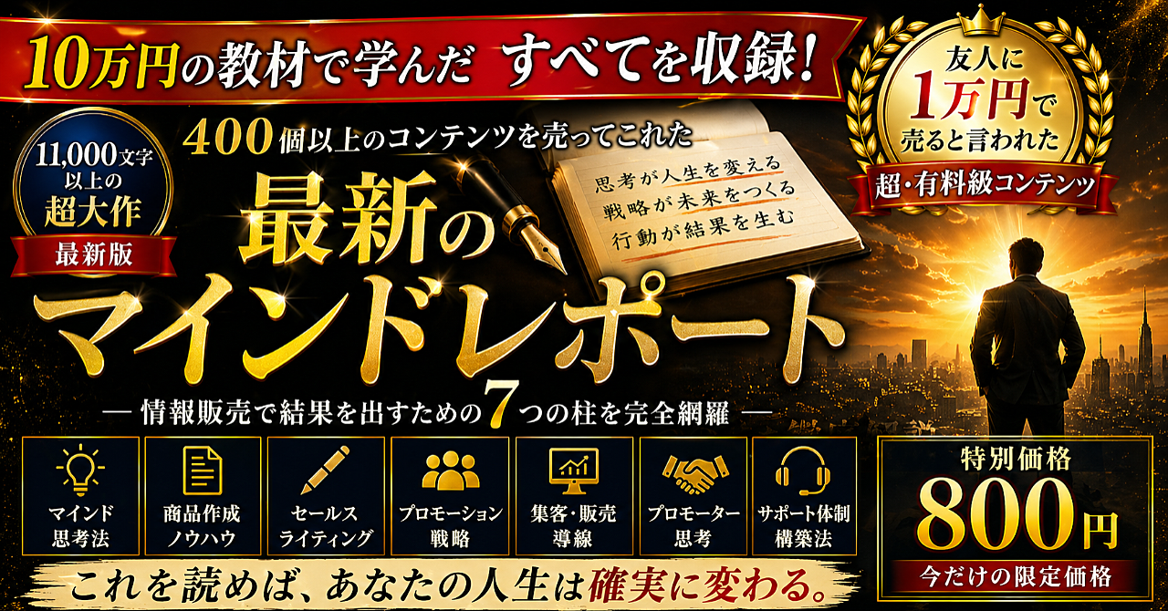 【400コンテンツ販売の思考を完全移植】 “行動できない・稼げない・続かない”を終わらせる!ザ・マインドレポート【最新版】