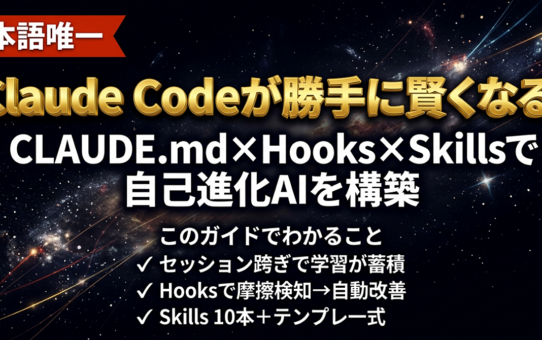 Claude Codeが勝手に賢くなる。CLAUDE.md×Hooks×Skillsで”自己進化AI”を作る全手順 投稿日: 2026年3月11日2026年3月12日 投稿者: fukuemon 続きを読む