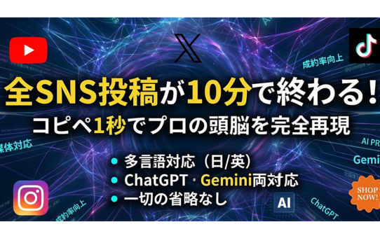 全SNS投稿が1分で終わる!画像1枚から極上テキストを一括生成「Trinity SNS Master」【🔥リリース記念・先着10部限定価格】 現在1,980円(※10部売れるごとに値上げし、最終的に 投稿日: 2026年3月13日2026年3月14日 投稿者: fukuemon 続きを読む