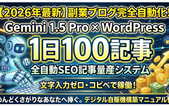 【文字入力ゼロ】Gemini API×WordPress完全自動化!寝ている間にSEO特化記事を量産するAIブログ構築Pythonコード 投稿日: 2026年3月21日2026年3月21日 投稿者: fukuemon 続きを読む