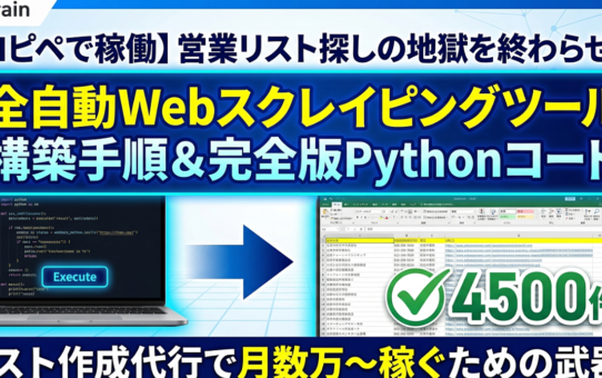 【コピペで稼働】営業リスト探しの地獄を終わらせる「全自動Webスクレイピングツール」構築手順と完全版Pythonコード 投稿日: 2026年3月21日2026年3月21日 投稿者: fukuemon 続きを読む