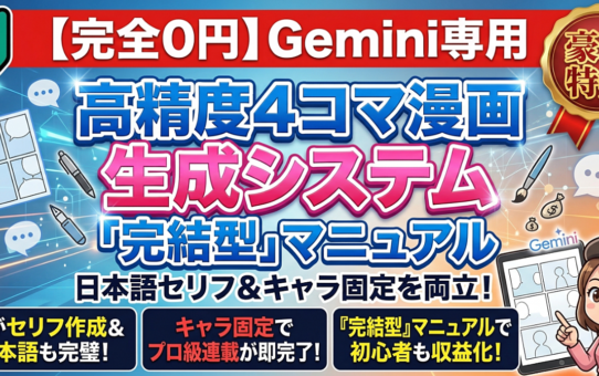 【完全0円】Gemini専用・高精度4コマ漫画生成システム|日本語セリフ&キャラ崩れを完全排除した「完結型」プロンプト構造マニュアル 投稿日: 2026年3月21日2026年3月22日 投稿者: fukuemon 続きを読む