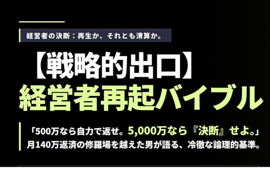【戦略的出口】経営者再起バイブル:負債6,000万円からの事業清算と生活再建。再び歩み出すための経営者の実体験記録 投稿日: 2026年3月21日2026年3月22日 投稿者: fukuemon 続きを読む