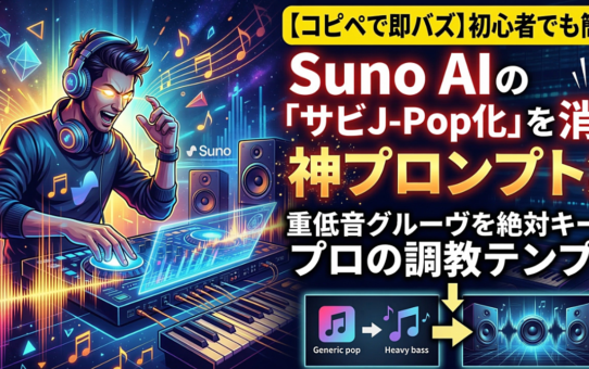 【コピペで即バズ】初心者でも簡単。Suno AIの「サビJ-Pop化」を消す神プロンプト集。重低音グルーヴを絶対キープするプロの調教テンプレ(ショートMV有) 投稿日: 2026年3月17日2026年3月18日 投稿者: fukuemon 続きを読む
