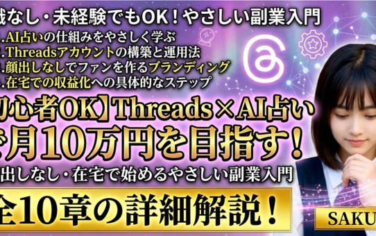 【初心者OK】【80,000文字以上の大ボリューム!】Threads×AI占いで月10万円を目指す!顔出しなし・在宅で始めるやさしい副業入門 投稿日: 2026年3月18日2026年3月18日 投稿者: fukuemon 続きを読む
