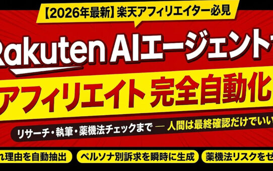【2026年最新】Rakuten AIエージェントでアフィリエイト記事を完全自動化|リサーチ・執筆・薬機法チェックまで一気通貫 投稿日: 2026年3月18日2026年3月19日 投稿者: fukuemon 続きを読む