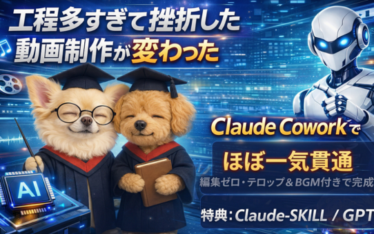挫折した動画制作がClaude Coworkで変わった|編集ゼロでテロップ・BGM付き動画を作るほぼ”一気貫通”システム 投稿日: 2026年3月26日2026年3月26日 投稿者: fukuemon 続きを読む
