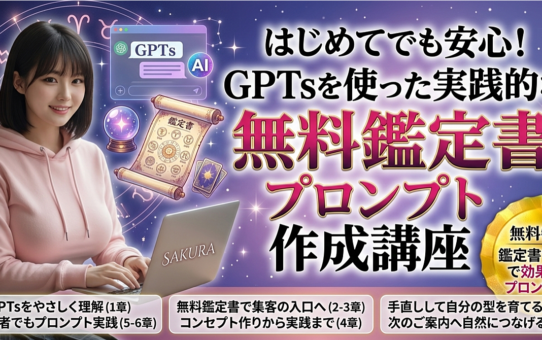 【65,000文字以上】【全10章の詳細説明】はじめてでも安心!GPTsを使った実践的な無料鑑定書プロンプト作成講座 投稿日: 2026年4月1日2026年4月2日 投稿者: fukuemon 続きを読む