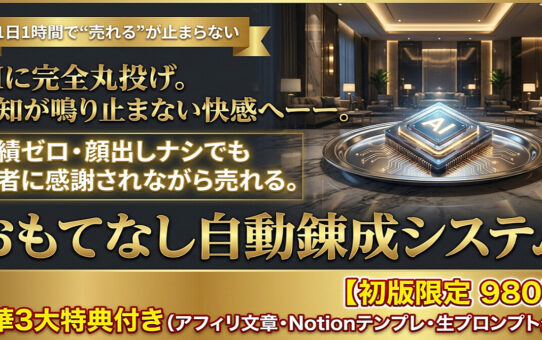 【初版980円/豪華3大特典】【通知が鳴り止まない快感へ】Xのバズから高単価セールスまでAIに完全丸投げ。読者に感謝されながら数万円がスルスル売れる『おもてなし自動コンテンツ錬成システム』 投稿日: 2026年4月1日2026年4月2日 投稿者: fukuemon 続きを読む