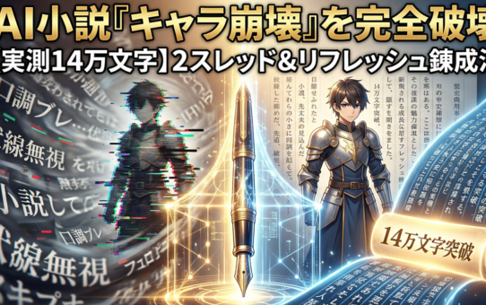 【実測14万文字】AI小説の「キャラ崩壊」を完全克服する。2スレッド管理&コンテキスト補完で生み出す、無限ストーリー錬成フレームワーク 投稿日: 2026年4月1日2026年4月2日 投稿者: fukuemon 続きを読む