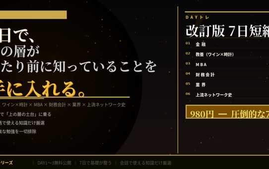 富裕層ウケする一般教養をこれだけで学べるDAYトレ7日短縮版(金融×ワイン×MBA×時計×財務・会計×業界×裏社会) 投稿日: 2026年4月1日2026年4月1日 投稿者: fukuemon 続きを読む