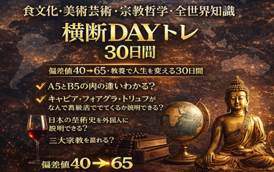 食文化・美術芸術・宗教哲学・全世界知識 横断DAYトレ 30日間 〜偏差値40→65・教養で人生を変える30日間〜 投稿日: 2026年4月4日2026年4月5日 投稿者: fukuemon 続きを読む