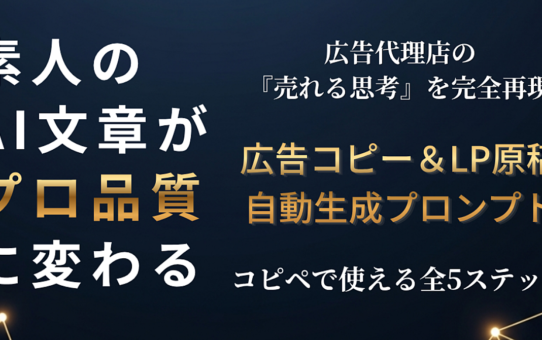 【最短15分・顔出し不要】AI×Instagram「勝手に売れる」特化型アカウント運用の全記録(ChatGPTプロンプト&テンプレート完備) 投稿日: 2026年4月4日2026年4月5日 投稿者: fukuemon 続きを読む